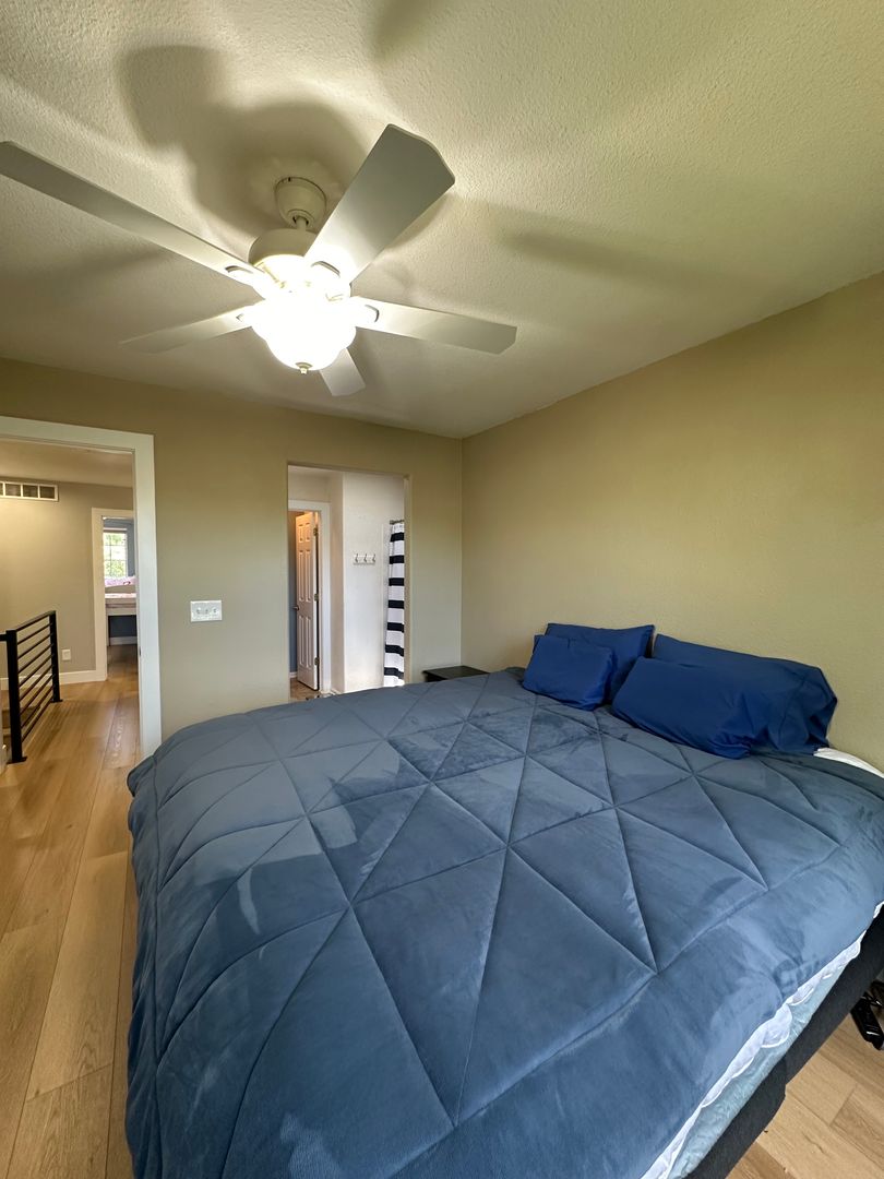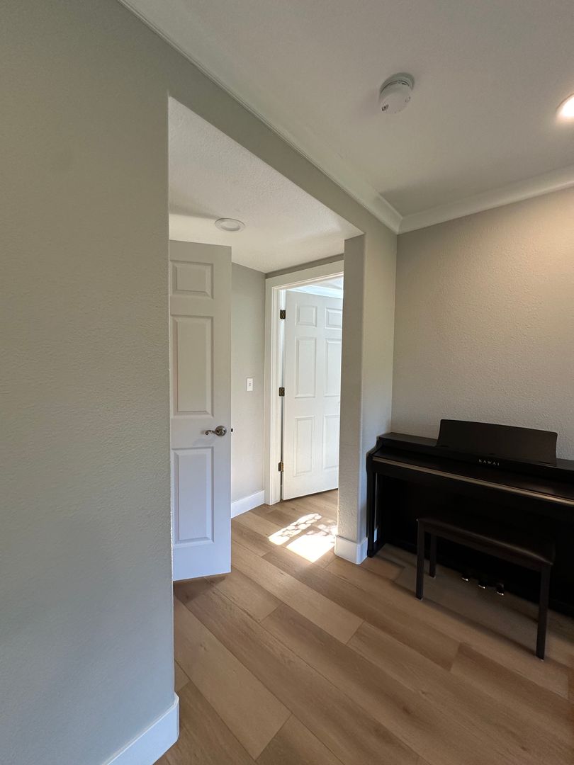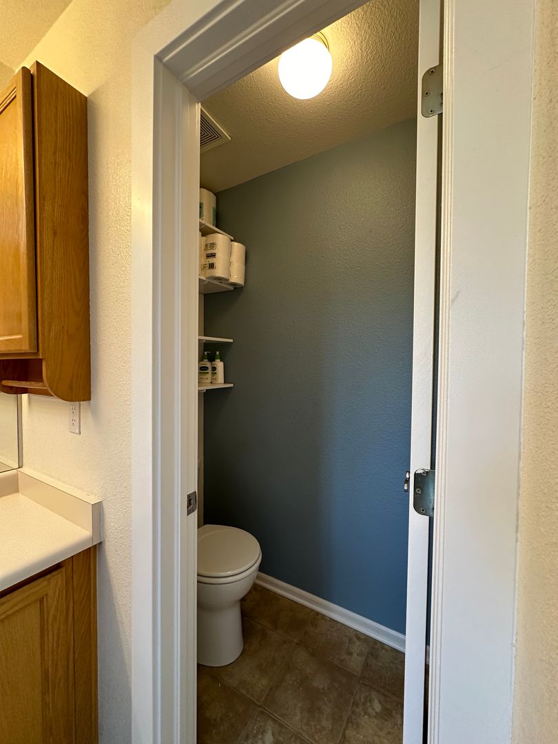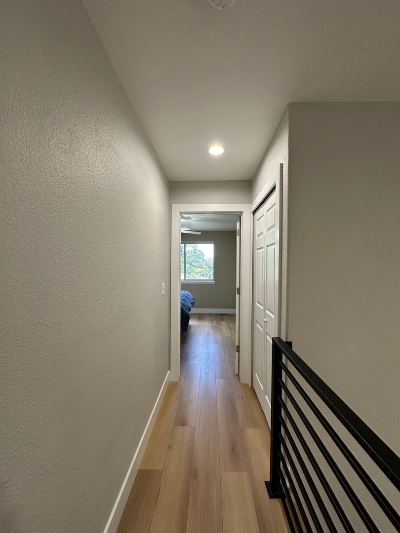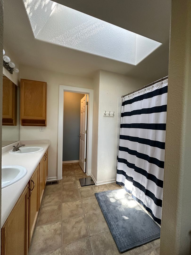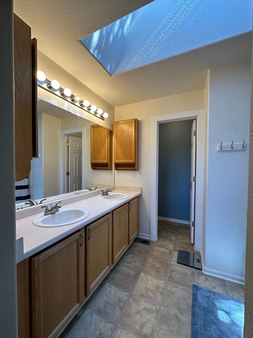 Upstairs the primary bedroom features expansive closet space and adjoining full bathroom with skylight. On second level the other two bedrooms share a full bath.