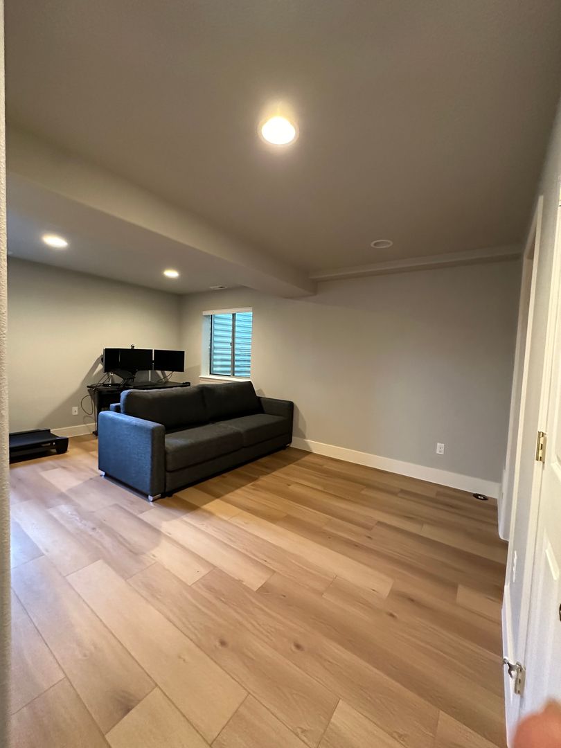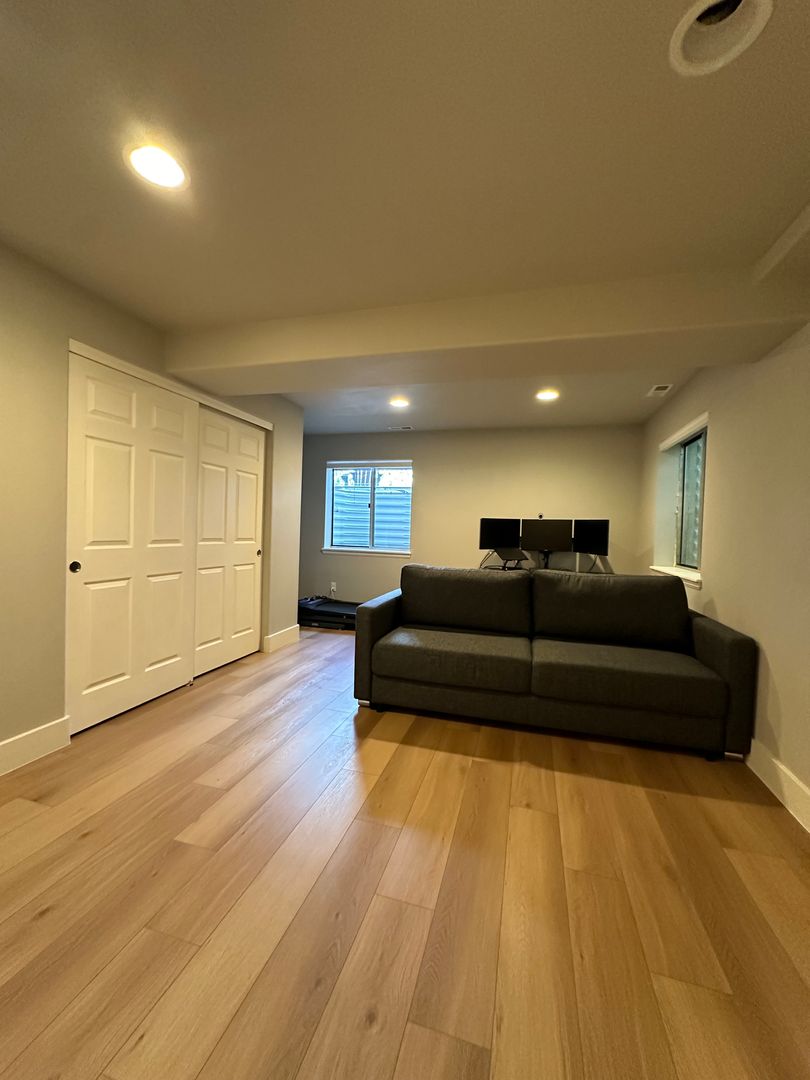 The finished lower level includes a living area perfect for theater room, crafts, exercise, or an office, with natural sunlight and a 3/4 bathroom.