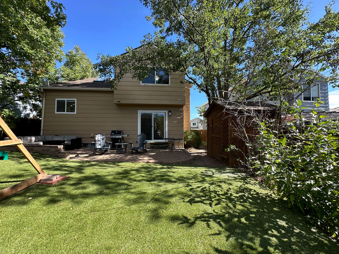 The backyard is an oasis for the entire family with a sunken area for entertaining, a shed to house your garden tools and mature landscaping for privacy to enjoy your home. The lawn is turf making it a low-maintenance yard.