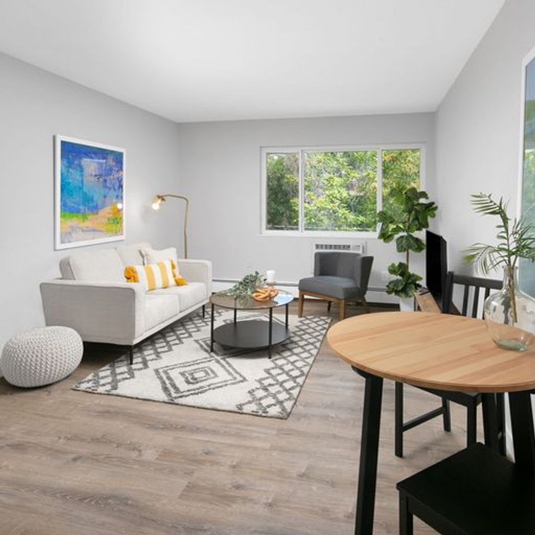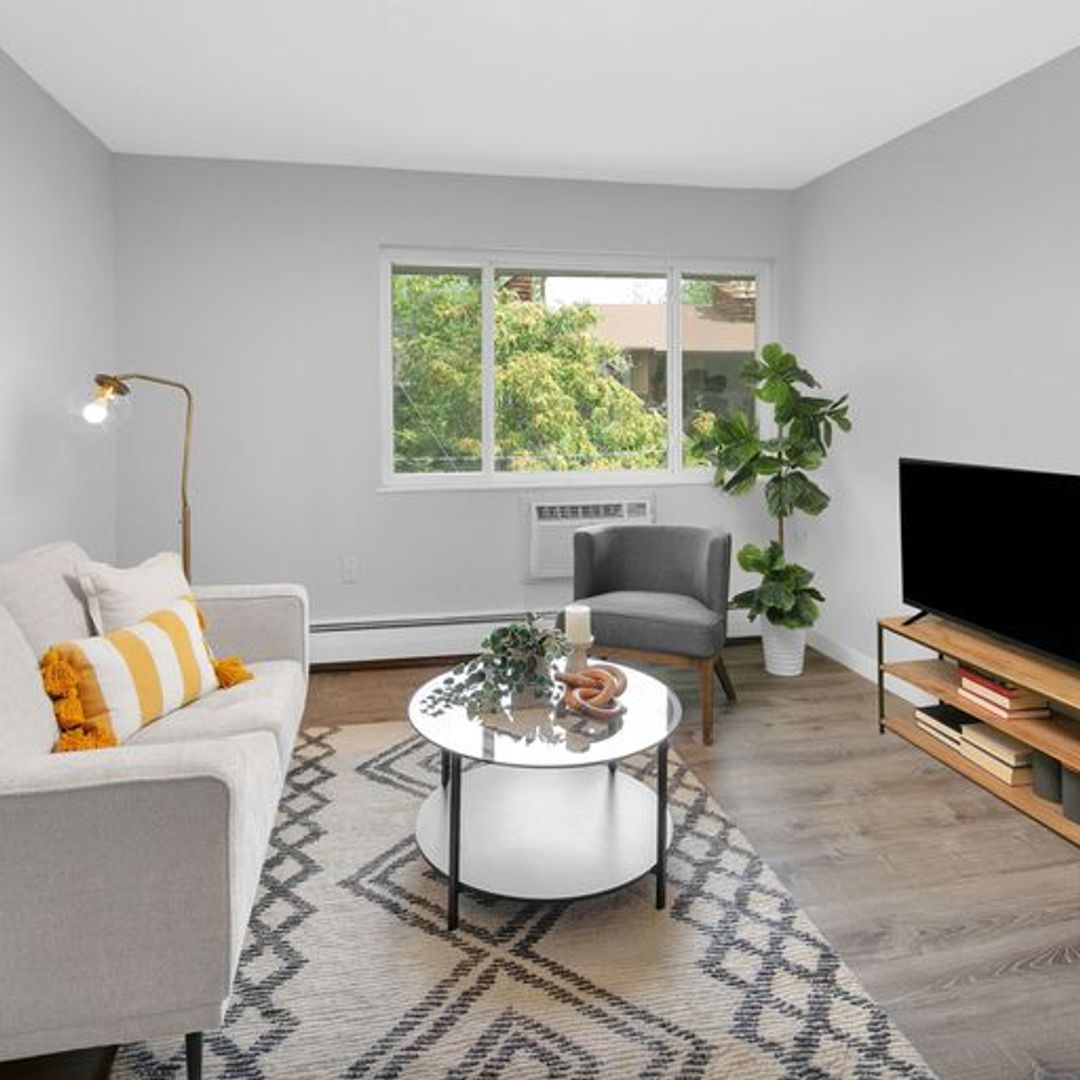 Come home to comfort in this newly renovated 1 bedroom and 1 bath apartment! This top floor apartment home boasts stainless appliances, stone countertops, hardwood LVT flooring, dishwashers, wood blinds, decorative lighting, and much much more!
