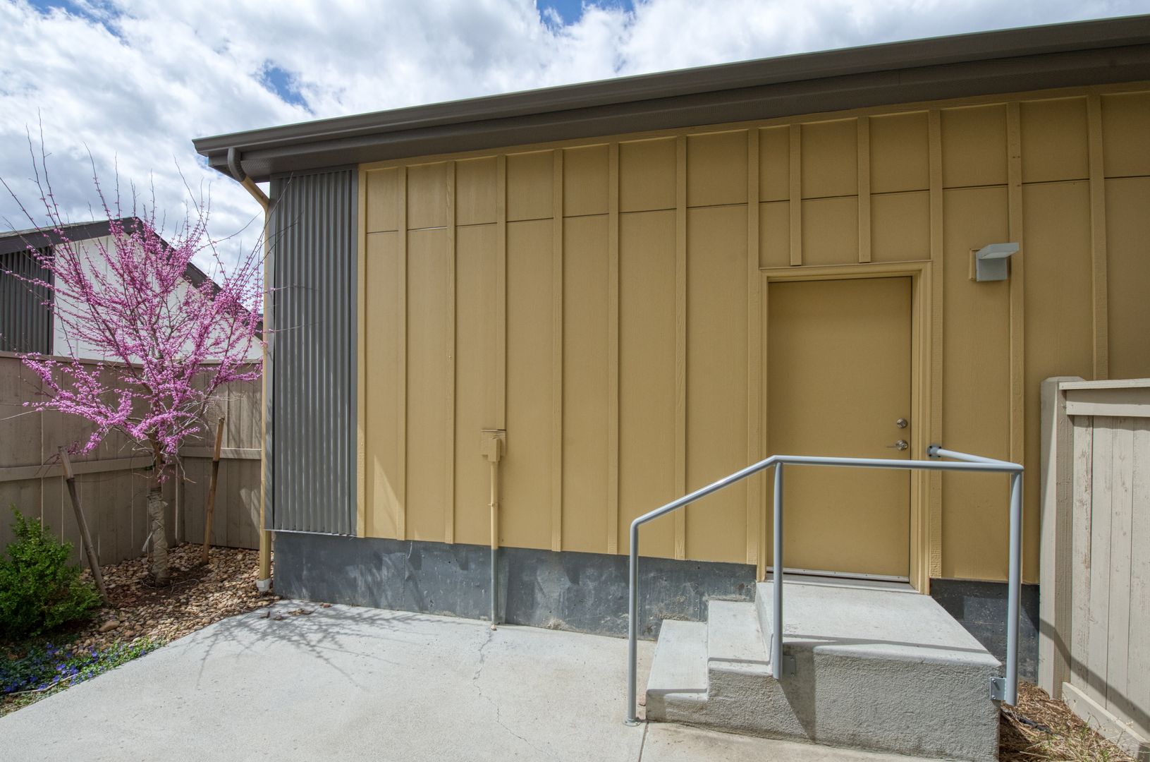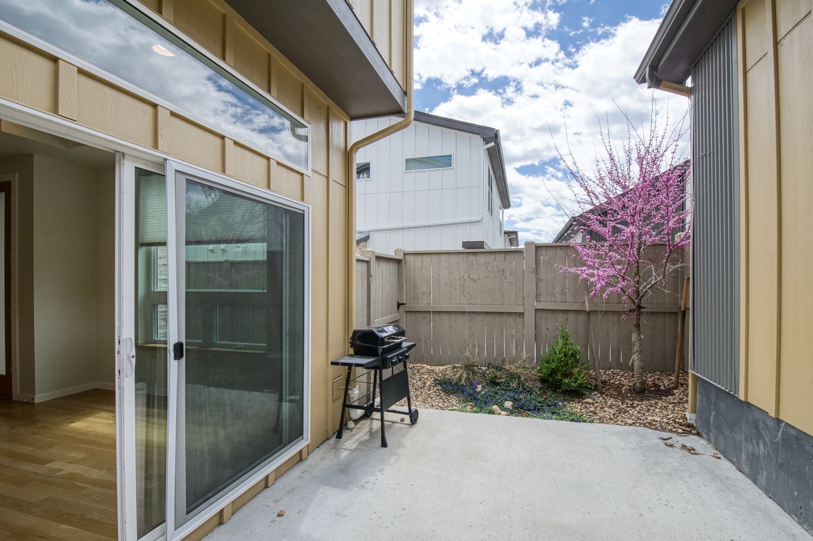 Step outside to a fenced backyard, an inviting space for outdoor relaxation or play.
