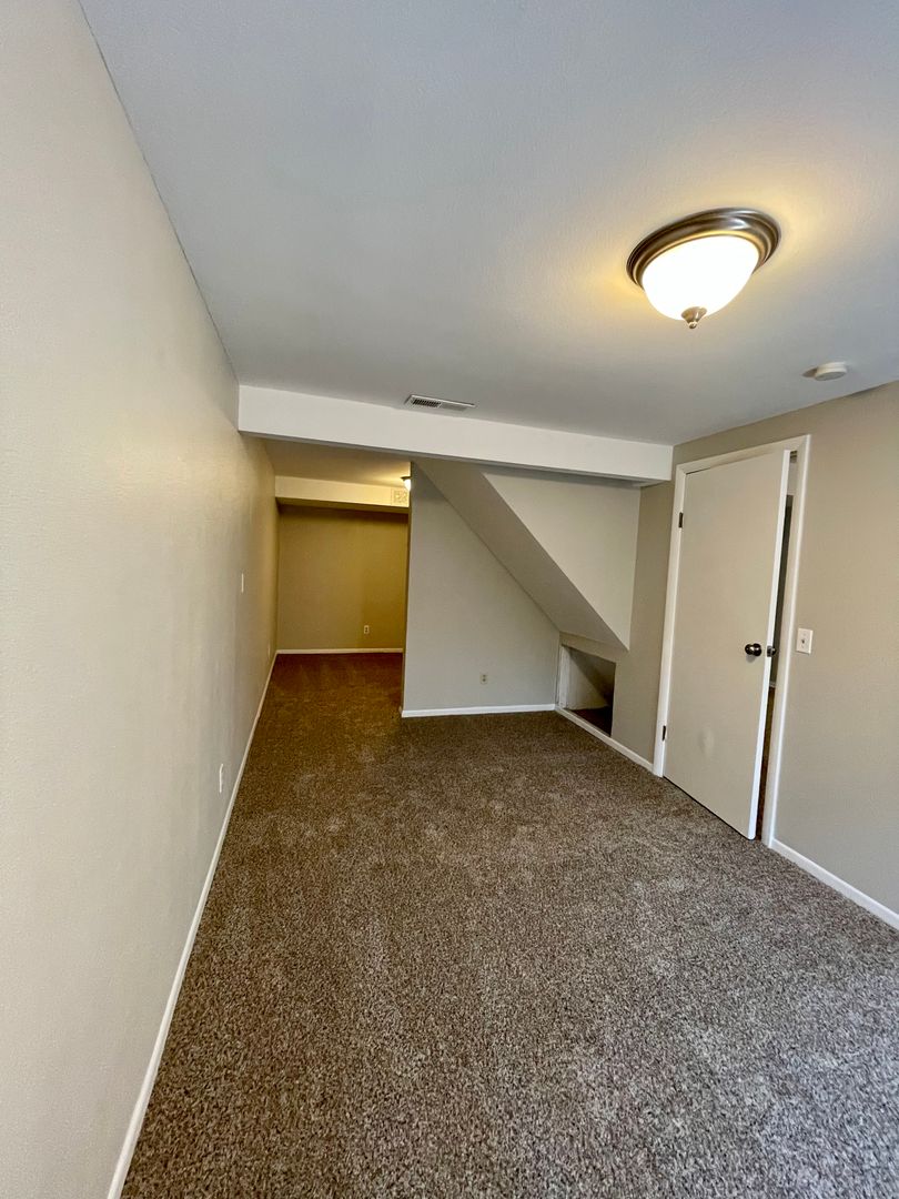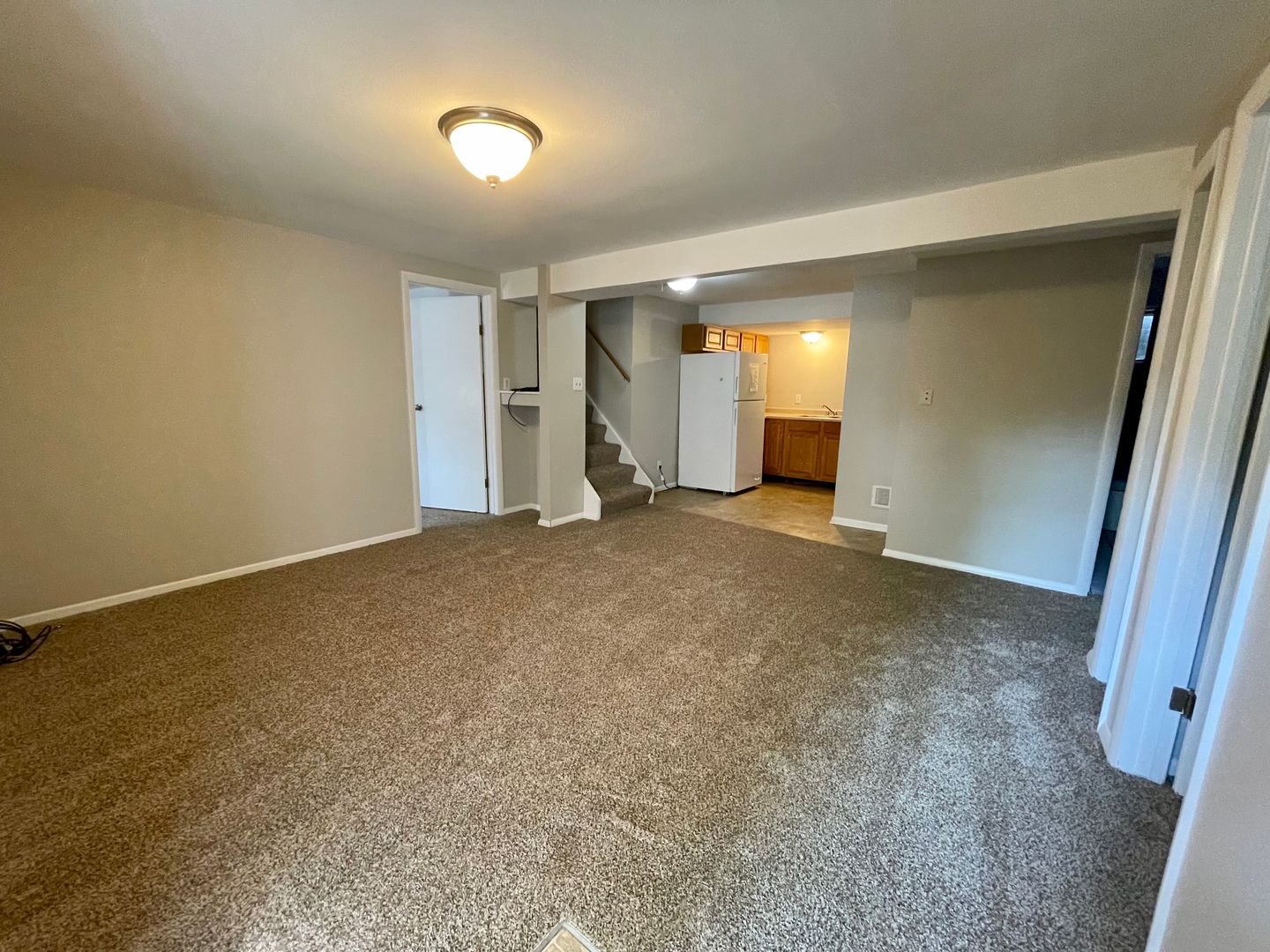 Head down to the basement with additional living room space, three bedrooms, a full bathroom, and a kitchenette.
