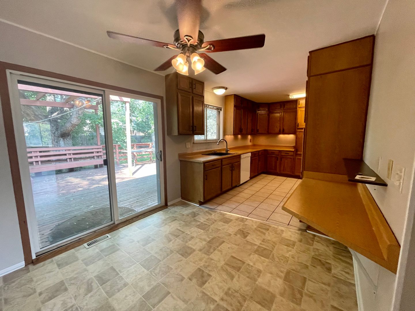 Enter the home and you will be greeted with a bright and open living room. The dining room and kitchen are on the other side with tons of storage.