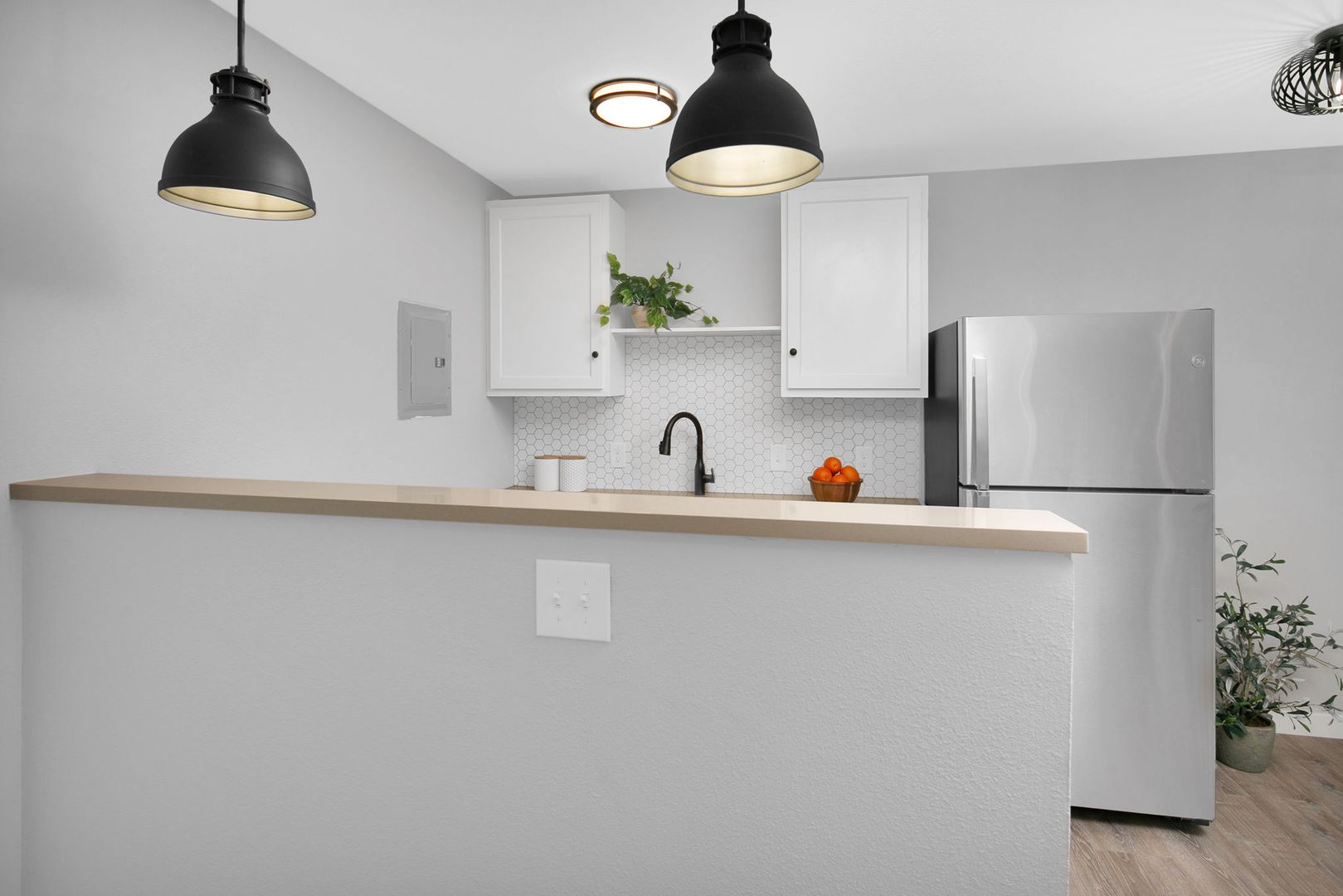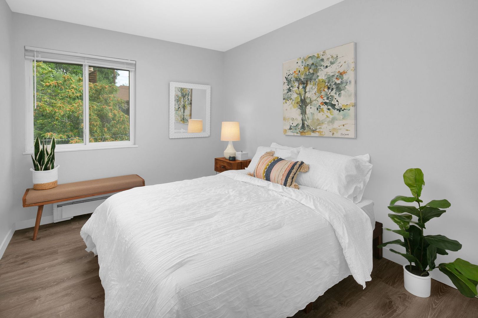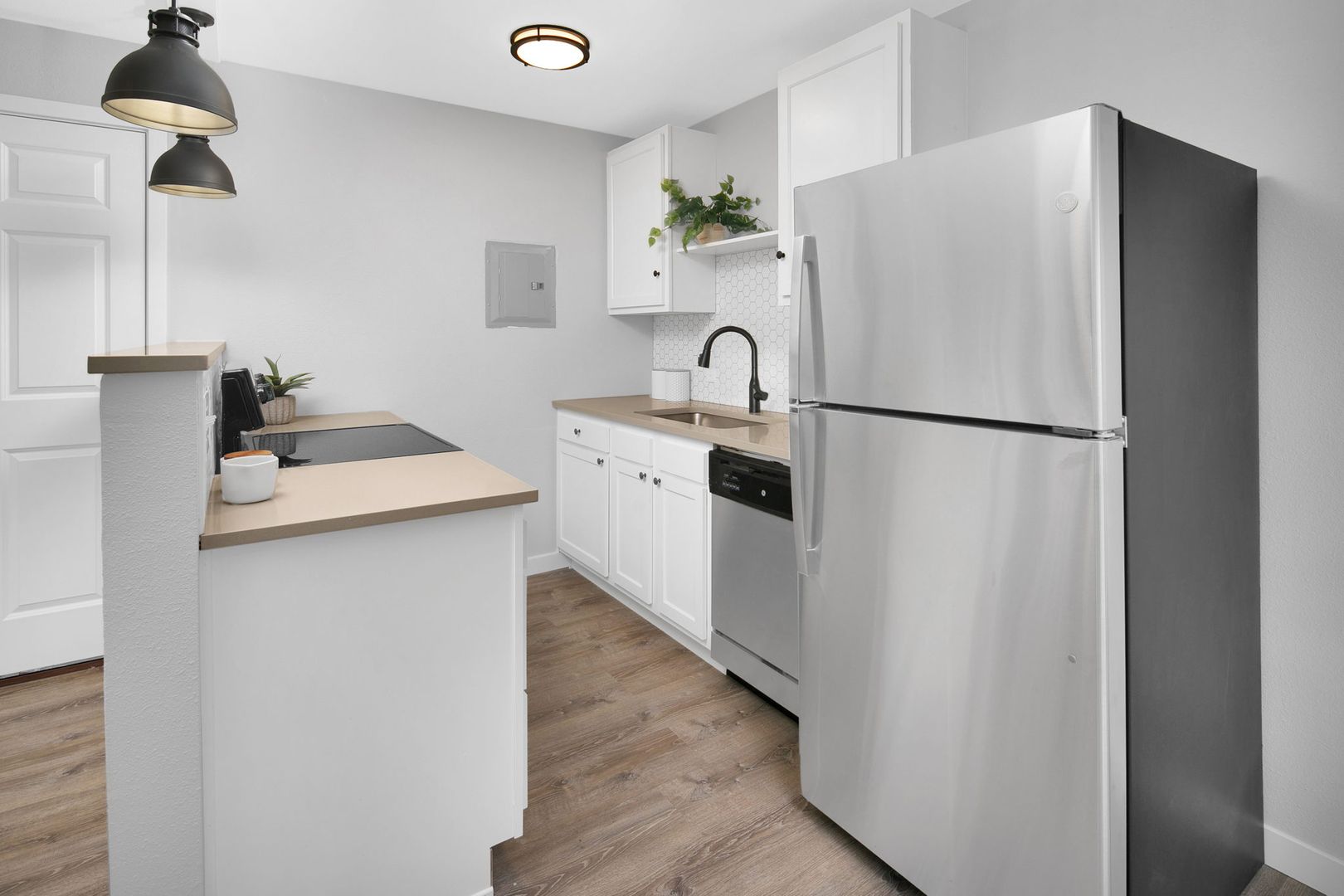 Come home to comfort in this newly renovated 1 bedroom and 1 bath apartment! This top floor apartment home boasts stainless appliances, stone countertops, hardwood LVT flooring, dishwashers, wood blinds, decorative lighting, and much much more!